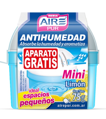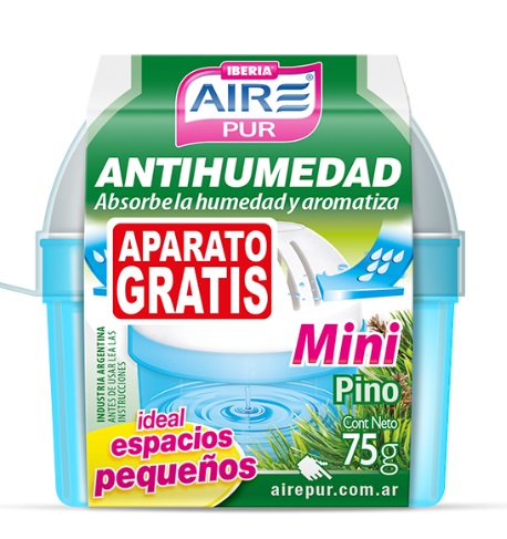 Protege tus prendas de la humedad en placares, armarios y vestidores perfumando el ambiente con exquisitas fragancias. Su doble función (antihumedad y desodorante) lo convierten en el aliado ideal para evitar los problemas derivados de la humedad en roperos, botineros, cajoneras, debajo de la cama, cajas de seguridad, toilettes y cualquier otro espacio pequeño. Previene problemas derivados de la humedad como la aparición de manchas, moho, malos olores, condensación, desgaste de cueros y telas, descascaramientos de pintura, etc. Aire Pur® Antihumedad Mini es un producto descartable con una duración de 1-3 meses según condiciones climáticas y humedad relativa del ambiente.
