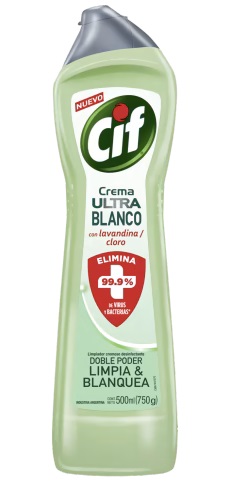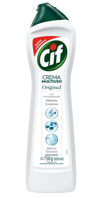 CIF Limpiador Cremoso es un limpiador cremoso con micropartículas que ofrece una máxima limpieza de las superficies con mínimo esfuerzo. La limpieza de Cif Limpiador Cremoso es imbatible en muchas superficies, brinda una limpieza profunda y remueve fácilmente las suciedades más difíciles haciendo que tus superficies queden brillantes. Te sorprenderás al ver como Cif Crema puede remover de manera fácil las suciedades más difíciles del baño, la cocina, y hasta objetos tan sorprendentes como un par de zapatillas. Algunas de las superficies de aplicación son: enlozadas, cromadas, de acero inoxidable, esmaltadas, de porcelana, de plástico, de goma, cerámicas, de cuerina. Los malos olores causados por el humo del tabaco, la humedad o las mascotas tienden a impregnarse en todas las habitaciones; por eso, es importante llevar a cabo métodos de limpieza y purificación del aire que contribuyan a mantener toda tu casa fresca regularmente, para ello podrías reemplazar esos fuertes olores con algo más placentero, usando un limpiador cremoso con aroma como el de Cif Crema para darle al ambiente una fragancia fresca y agradable. Para su correcto uso: aplique una pequeña cantidad de Cif Crema sobre un paño húmedo (tipo Cif Ballerina/Danzarina) o directamente sobre la superficie a limpiar. Luego simplemente, limpie la superficie y enjuague; Cierre bien la tapa después de usar; Para obtener resultados más brillantes, repase con un paño seco luego de enjuagar. Beneficios clave Imbatible en muchas superficies Con Microparticulas Máxima limpieza, mínimo esfuerzo Remueve fácilmente las suciedades más dificiles Superficies Brillantes Limpieza Profunda