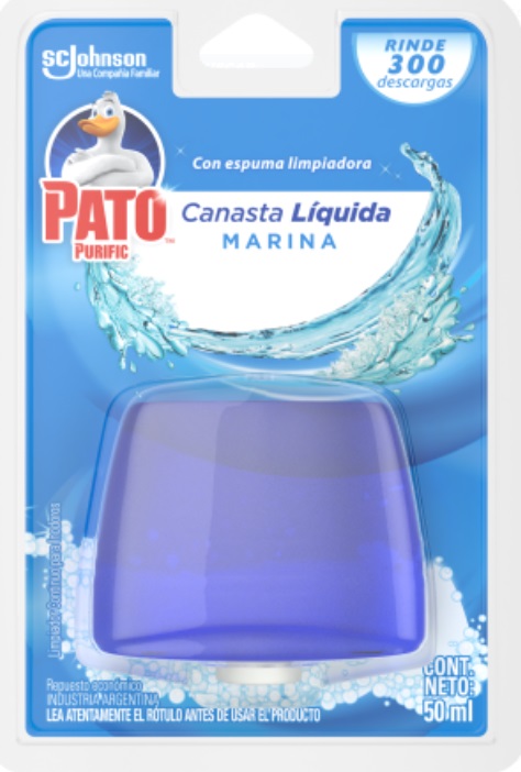 Pato Purific® Canasta Líquida para Inodoros está especialmente diseñada para limpiar, perfumar y prevenir el sarro de su inodoro continuamente. Su dosificador de avanzada tecnología libera en cada descarga la misma cantidad de su efectivo limpiador concentrado como de su incomparable fragancia fresca. De esta forma su inodoro se limpia y aromatiza con la misma intensidad cada día, previniendo además la formación de sarro desde el primer hasta el último día. Mantiene su inodoro limpio Previene la formación de manchas y de sarro Aromatiza con la misma intensidad con su fragancia fresca Eficaz desde el primer hasta el último día Rinde 300 descargas No mancha el inodoro