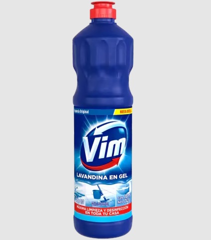Descubrí el poder imparable de la lavandina en gel Vim, de efecto prolongado; una lavandina espesa con moléculas activas que rinde 3 veces más que las lavandinas líquidas. Vim lavandina en gel permanece en las superficies por más tiempo* para eliminar las manchas del inodoro y erradicar los gérmenes. Equipate con VIM Lavandina en Gel y serás imparable en la lucha contra los gérmenes de toda tu casa. Vim lavandina en gel elimina 99,9% de hongos, virus y bacterias de toda tu casa y te ayuda a proteger a toda tu familia. Utilizá VIM en todas las superficies de tu casa: BAÑO, INODORO, COCINA, UTENSILIOS DE COCINA, YACHOS DE BASURA, MESADAS, PISOS Y GRANDES SUPERFICIES. Vim lavandina en gel es la nueva generación de lavandinas, ya que gracias a su consistencia en gel y sus agentes limpiadores limpia superficies y mata mayor cantidad de gérmenes que las lavandinas líquidas comunes. Vim tiene las siguientes ventajas en comparación con las lavandinas líquidas debido a su envase y viscosidad: Es fácil de dosificar lo que hace que, cuando se utiliza puro, rinde hasta 3 veces más que una lavandina líquida*. No salpica, por lo que es difícil que arruine la ropa al usarla. Se adhiere a las superficies, permitiendo más tiempo de contacto del producto con la superficie, para limpiar y desinfectar mejor. Limpia y desinfecta toda tu casa. *(*) Testeo realizado en inodoro vs lavandina líquida tradicional Lavandina en Gel VIM Original es un Agua Lavandina Aditivada en gel Las lavandinas VIM eliminan el 99.9% de VIRUS, HONGOS Y BACTERIAS Rinde hasta 3 veces más que las lavandinas líquida en superficies verticales Lavandina en Gel con pico dosificador inclinado para multisuperficies, permite desinfectar todas las superficies de tu casa Gracias a su consistencia en gel se adhiere mejor a las superficies y no salpica Su pico inclinado permite llegar a las superficies más difíciles como las del inodoro, juntas de azulejos